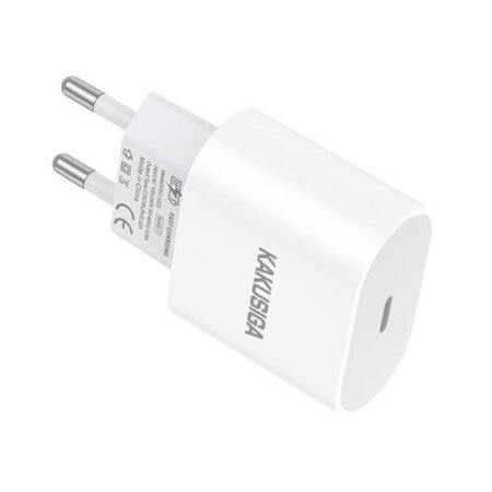 Υψηλής απόδοσης φορτιστής τοίχου της KAKUSIGA, κατασκευασμένος από ανθεκτικό υλικό και συμβατός με συσκευές που φορτίζουν μέσω θύρας USB-C.