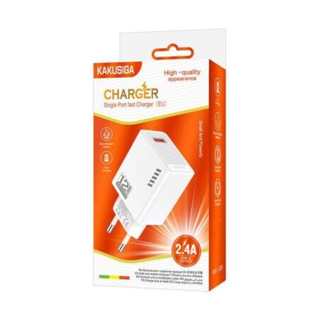 Υψηλής απόδοσης φορτιστής τοίχου της KAKUSIGA, κατασκευασμένος από ανθεκτικό υλικό και συμβατός με συσκευές που φορτίζουν μέσω θύρας USB.