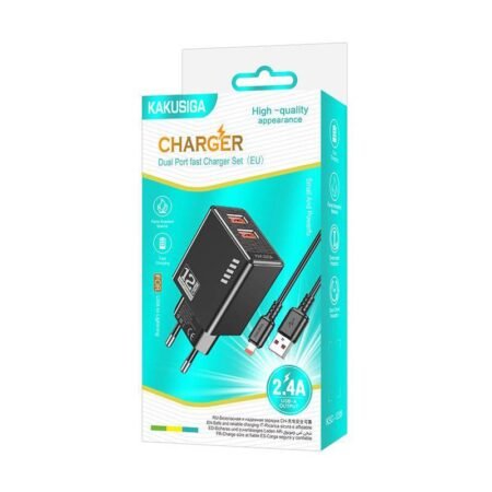 Υψηλής απόδοσης φορτιστής τοίχου της KAKUSIGA, κατασκευασμένος από ανθεκτικό υλικό και συμβατός με συσκευές που φορτίζουν μέσω θύρας USB.