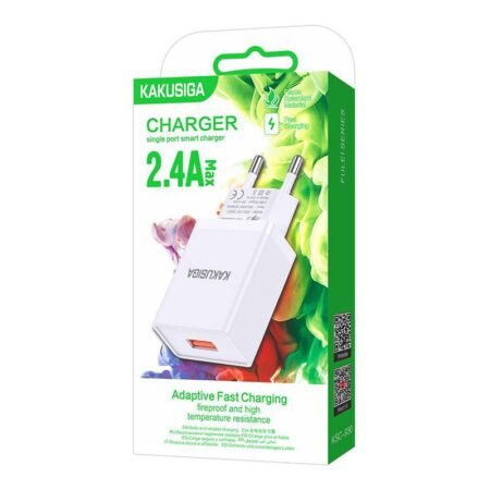 Υψηλής απόδοσης φορτιστής τοίχου της KAKUSIGA, κατασκευασμένος από ανθεκτικό υλικό και συμβατός με συσκευές που φορτίζουν μέσω θύρας USB.