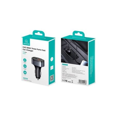 USAMS φορτιστής αυτοκινήτου US-CC257, USB/USB-C/Lightning, 100W, γκρι