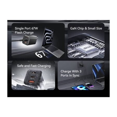 Διαθέτει 1x USB και 2x USB-C θύρες εξόδου που υποστηρίζουν φόρτιση με απόδοση έως 67W.